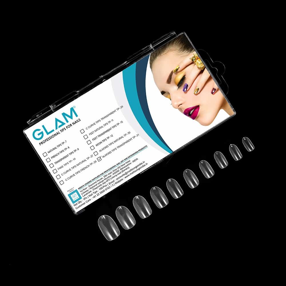 Glam Almond Transparent Nail Tips are used in creating gel and acrylic extensions on feet. It can also be used as fake tips that have small nails or don’t want to do anything on their natural nails. It can be used on a daily basis for applying gel or normal nail paints. It fits well on Natural nails. It comes in sizes of 0 to 9.Once applied with glue it lasts up to 15 – 20 days. Nail Paint can be wiped off from this tip while using Glam Non-Acetone Nail Polish remover and it won’t damage tips and new color can be applied again. Tips don’t have any sharp edges hence it doesn’t damage the cuticle area at all. They are easy to apply on natural tips with the help of Glam Nail Glue. They look natural and no different from the original nails once professional extensions products were applied on them. They are not too thin or thick so they don’t get break while buffing nor do they add weight on nails. They are durable enough and easy to remove. It can also be put under a UV or LED lamp and it won’t create any heating sensation on natural nails as it is made up of high-quality PP material. It is suitable for professional use. Almond Nail Tips comes in 500 and 100 pieces of packaging.