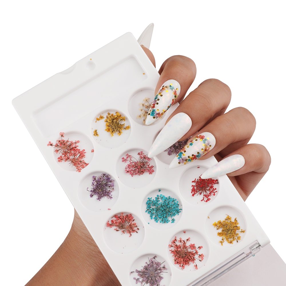 Glam Dry Flower is a collection of authentic dried flowers made especially for nail art. To produce a nice nail art, it is made with high-quality flowers. The box contains 60 pieces of gorgeous flowers in various colors and sizes. It looks great on any length of nail and gives them an exquisite and distinctive appeal. It’s incredibly simple to use. It can be used on both real and fake nails, as well as any extensions. It has UV/LED protection and should be coated with a top coat. There are no ingredients in the items that could cause a reaction on the nails or skin. It’s appropriate for any occasion. It can be utilized by both professional and individuals.