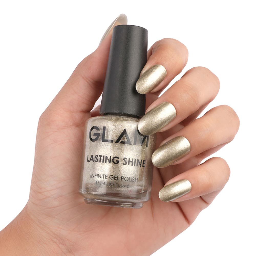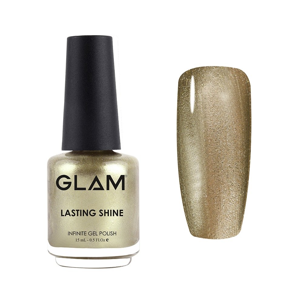 ALL THAT GLITTERS IS GOLD! Add a touch of sparkle to your wardrobe with a splash of Glam Lasting Shine Gold Infinite Gel Polish. It is very easy to apply for everyday use and does not need UV/LED Lamp to get results like gel polish. Lasting Shine Gold Infinite Shine Gel Polish gives good results when applied with Lasting Shine Base Coat and Top Coat. It lasts longer and gives your nails a shiny effect finish. This lacquer has been formulated with high quality pigments that reveal their true brightness and vividness of colors. GLAM Infinite Gel Polish – Gold has high viscosity which does not chip, fade or gets dull and very easy to remove. No harmful chemicals are present in the formula which could lead to any reaction on nails and skin. The quantity of Lasting Shine Gold Infinite Gel Polish is 15ml. It can suffice for a minimum 40 clients. It is recommended for Salon Professionals and Consumers.
