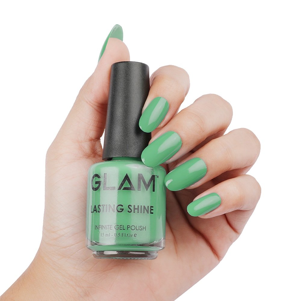 Make your nails look pretty & chic, not gaudy with Glam Lasting Shine Green Nail Polish Collection. Pick your favorites (or, um, all of them) so you can be ready to go when the perfect moment strikes to make everyone jealous. Lasting Shine Light Green Nail Polish is just bright enough to make your nails look fresh, yet subdued enough to be considered a neutral. GLAM Infinite Gel Polish – Green is very easy to apply for everyday use and does not need UV/LED Lamp to get results like gel polish. Lasting Shine Light Green Nail Polish gives good results when applied with Lasting Shine Base Coat and Top Coat. It lasts longer and gives your nails a shiny effect finish. This lacquer has been formulated with high quality pigments that reveal their true brightness and vividness of colors. GLAM Infinite Gel Polish – Green has high viscosity which does not chip, fade or gets dull and very easy to remove. No harmful chemicals are present in the formula which could lead to any reaction on nails and skin. The quantity of Lasting Shine Light Green Nail Polish is 15 ml. It can suffice for a minimum 40 clients. It is recommended for Salon Professionals and Consumers.