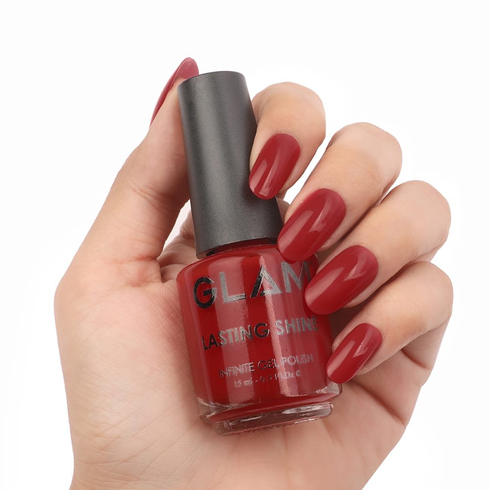 This season, take Glam Lasting Shine Red Series for a spin! The shades of Red are historically bold, daring, and adventurous colors. Glam Lasting Shine Cherry Red Infinite Gel Polish will steal the show whenever you wear. It is very easy to apply for everyday use and does not need UV/LED Lamp to get results like gel polish. Lasting Shine Cherry Red Infinite Shine Gel Polish gives good results when applied with Lasting Shine Base Coat and Top Coat. It lasts longer and gives your nails a shiny effect finish. This lacquer has been formulated with high quality pigments that reveal their true brightness and vividness of colors. It has high viscosity which does not chip, fade or gets dull and very easy to remove. No harmful chemicals are present in the formula which could lead to any reaction on nails and skin. The quantity of Lasting Shine Cherry Red Infinite Gel Polish is 15ml. GLAM Infinite Gel Polish – Red can suffice for a minimum 40 clients. It is recommended for Salon Professionals and Consumers.