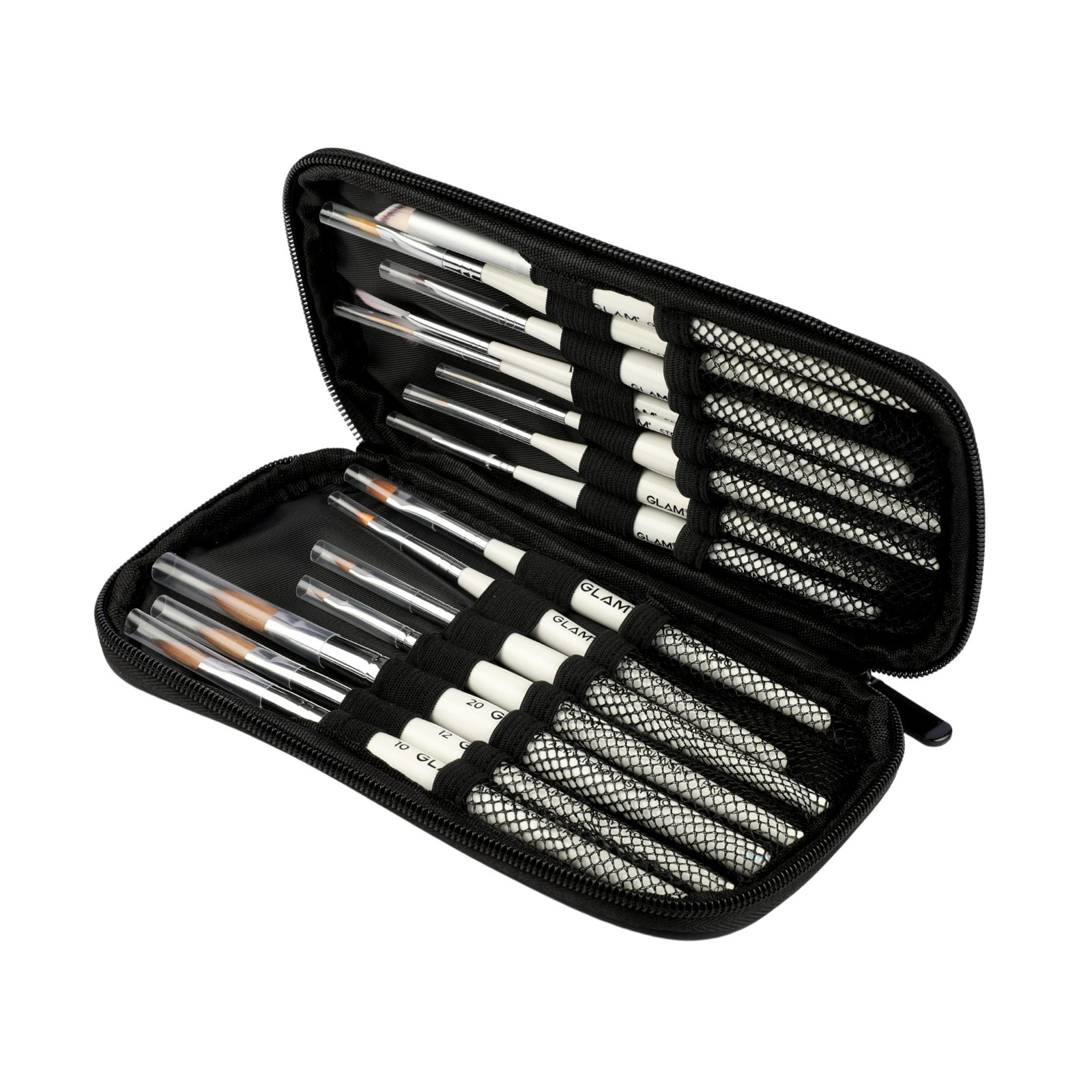 Glam Professional Brush Kit is your go-to solution for flawless nail art and extensions! Each brush in the set is crafted with precision using high-quality kolinsky bristles, ensuring exceptional performance and durability. With a comfortable wooden handle designed for a secure grip, this kit provides the perfect tools for achieving intricate designs with ease. There are 15 different brushes for creating varied nail designs. You can experience the versatility and perfection of professional- grade and high-quality brushes, all in one handy kit. Whether you’re running a salon service or practicing your nail art skills, the Glam Professional Brush Kit offers a comprehensive range of brushes, all neatly packaged for your convenience.